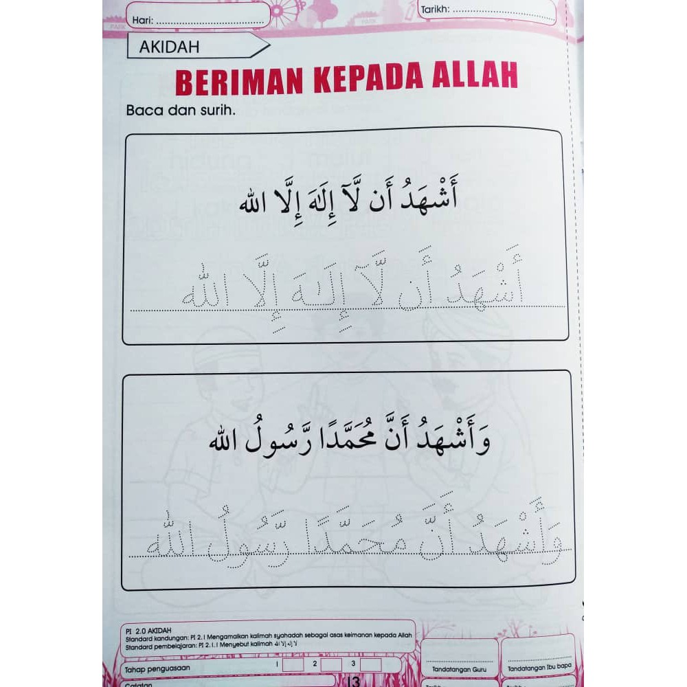 Kalimah syahadah pra sekolah dokter andalan. Tidak beriman dengan perkara yang bertentangan dengan ucapan syahadah tersebut. Syahadat disebut juga dengan Syahadatain karena terdiri dari 2 kalimat Dalam bahasa arab Syahadatain berarti 2 kalimat Syahadat.